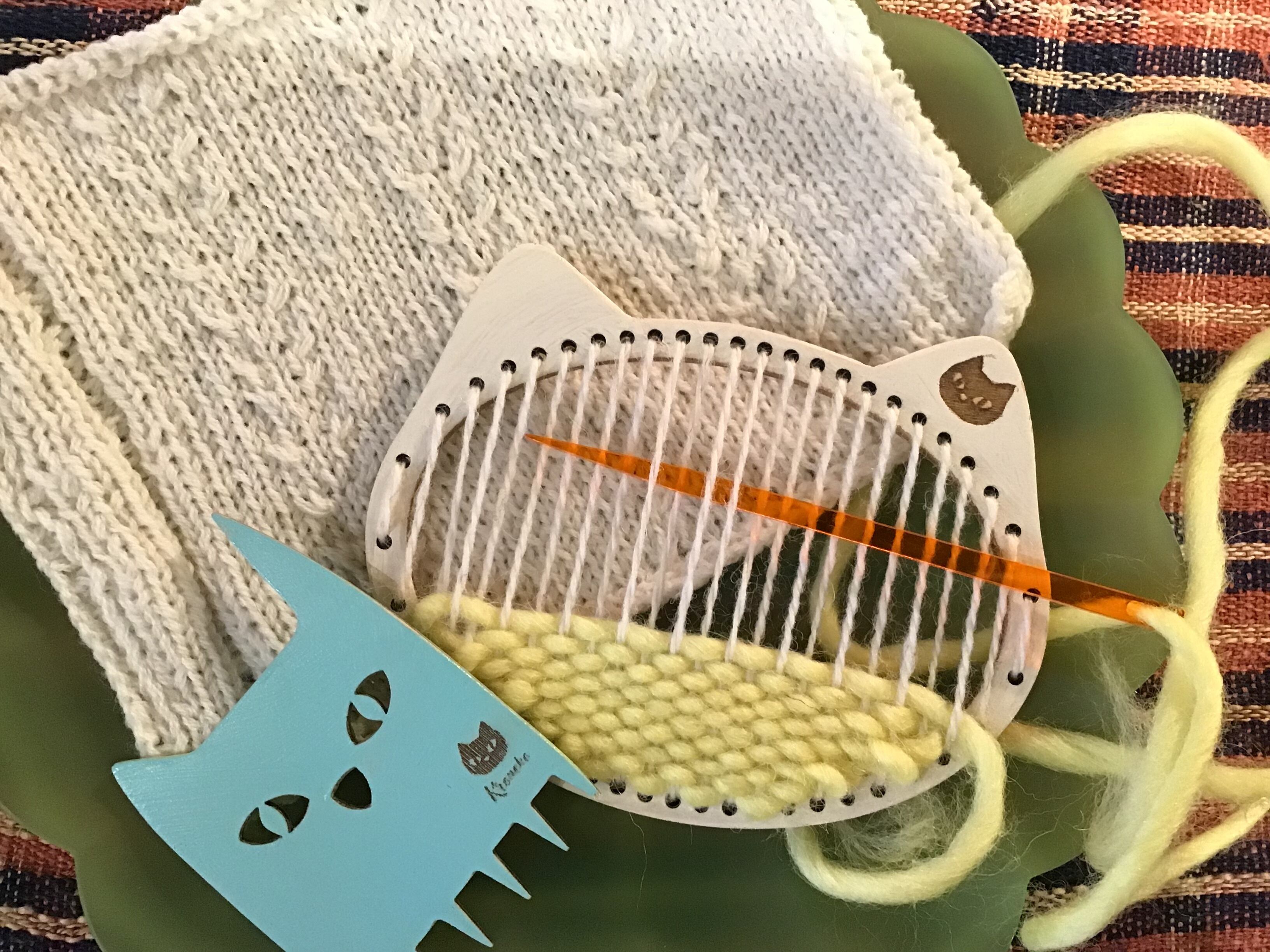 経糸は切れにくいものを使ってください。緯糸はふわふわを使うと可愛いにゃんこオーナメントが出来ますよ!