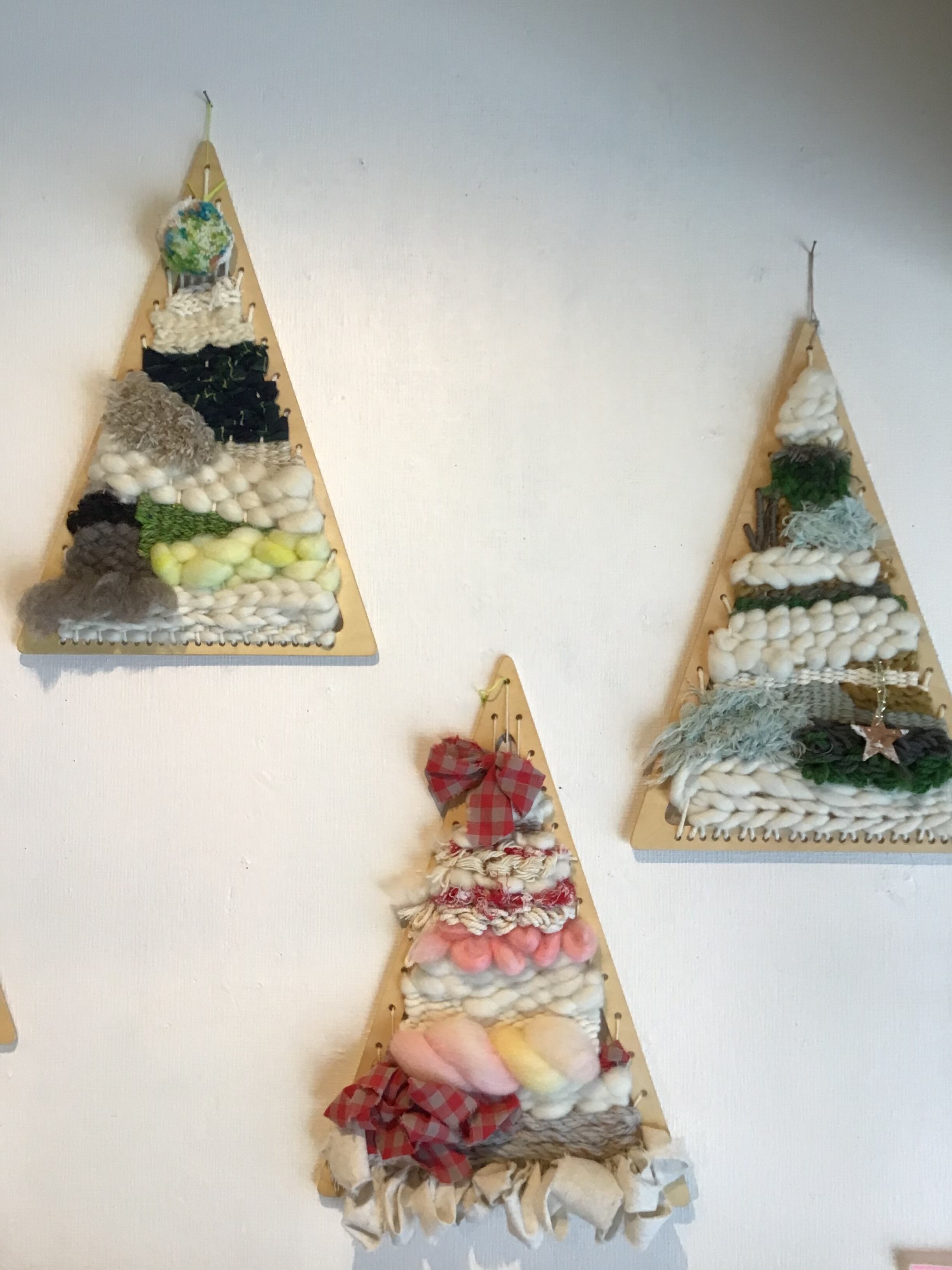 色んな素材をどんどん織り込むと、ゴージャスなオーナメントが完成します!そのまま壁に飾ることが出来ます。