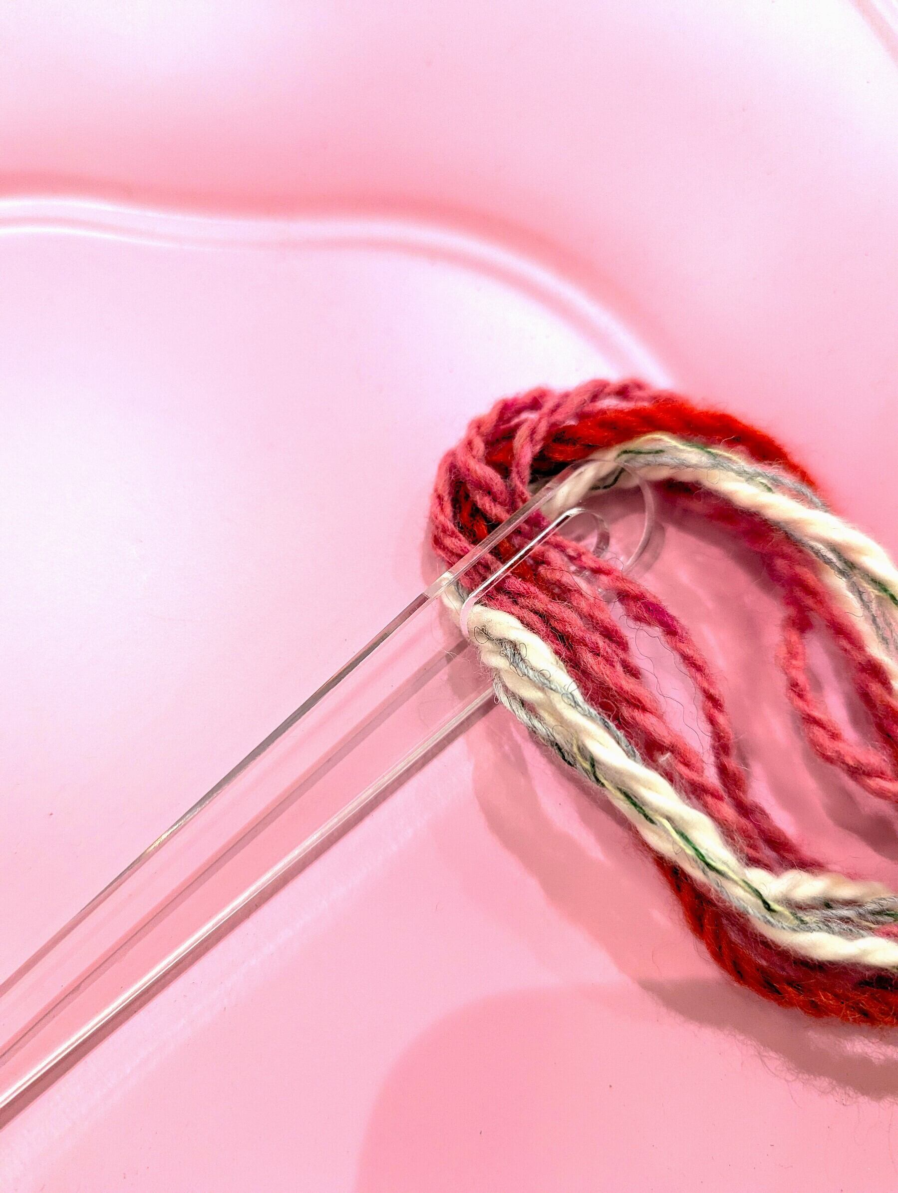20センチの長さで、大きめの作品に便利な大きさとなっています。アクリル製のしっかりとした作りで、針先は横から見ると平らで経糸の糸を割ったりせず拾うのに適しています。
