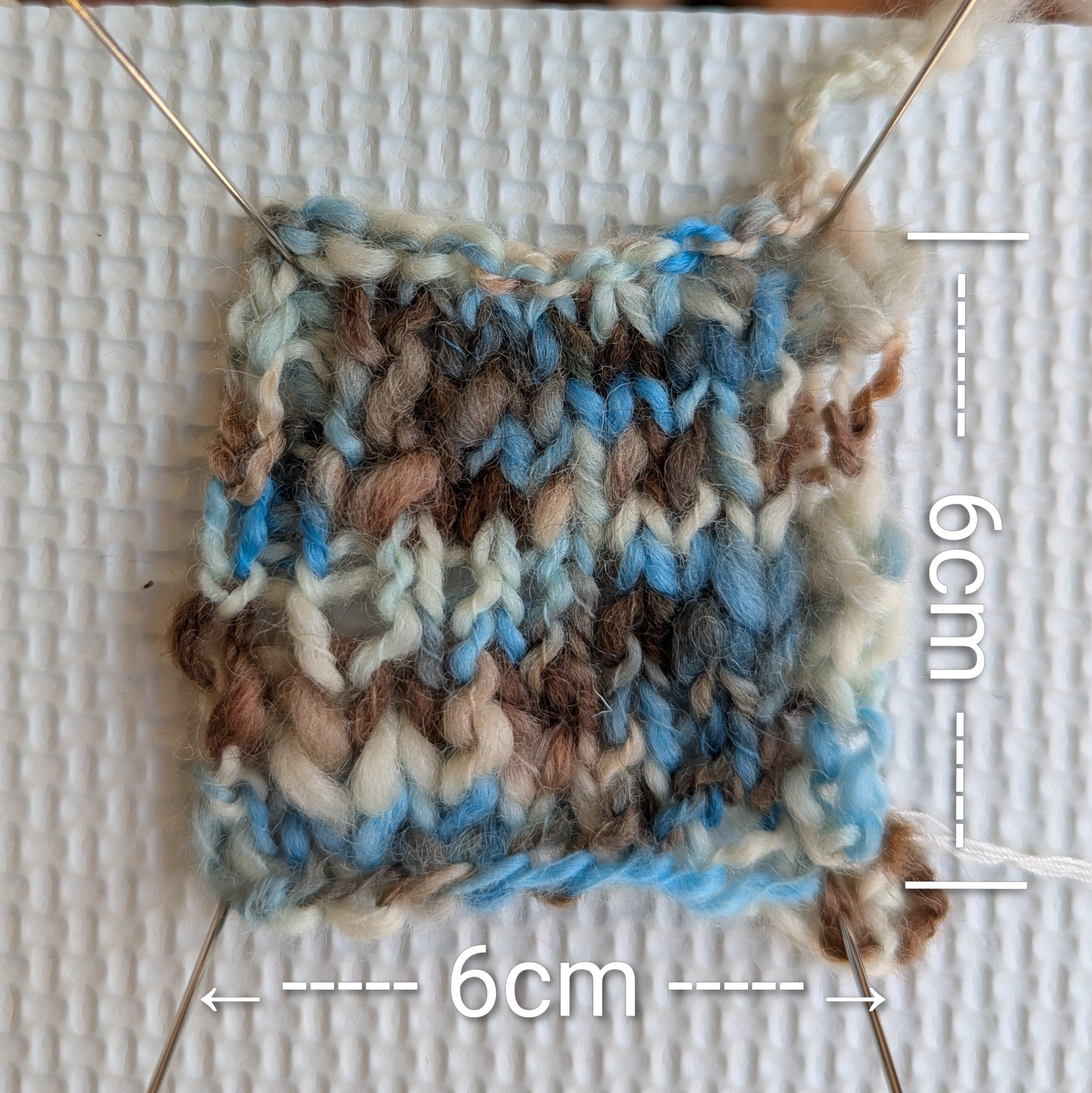 写真の見本編みはUS3.5mm /日本約5号 で編んでいますが、編み手の癖として緩めです。